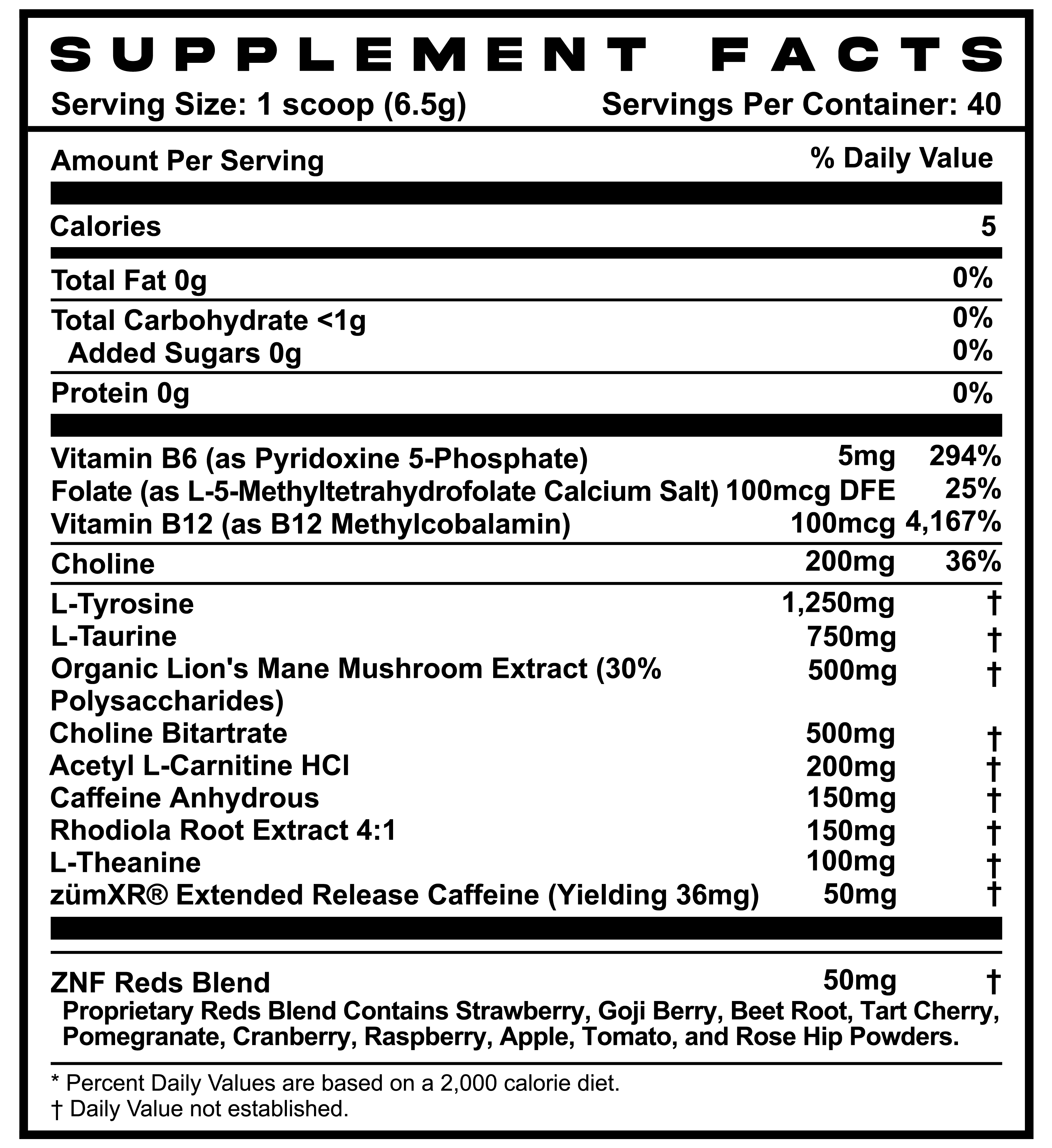- 186 mg caffeine/serving (includes Extended-Release caffeine)